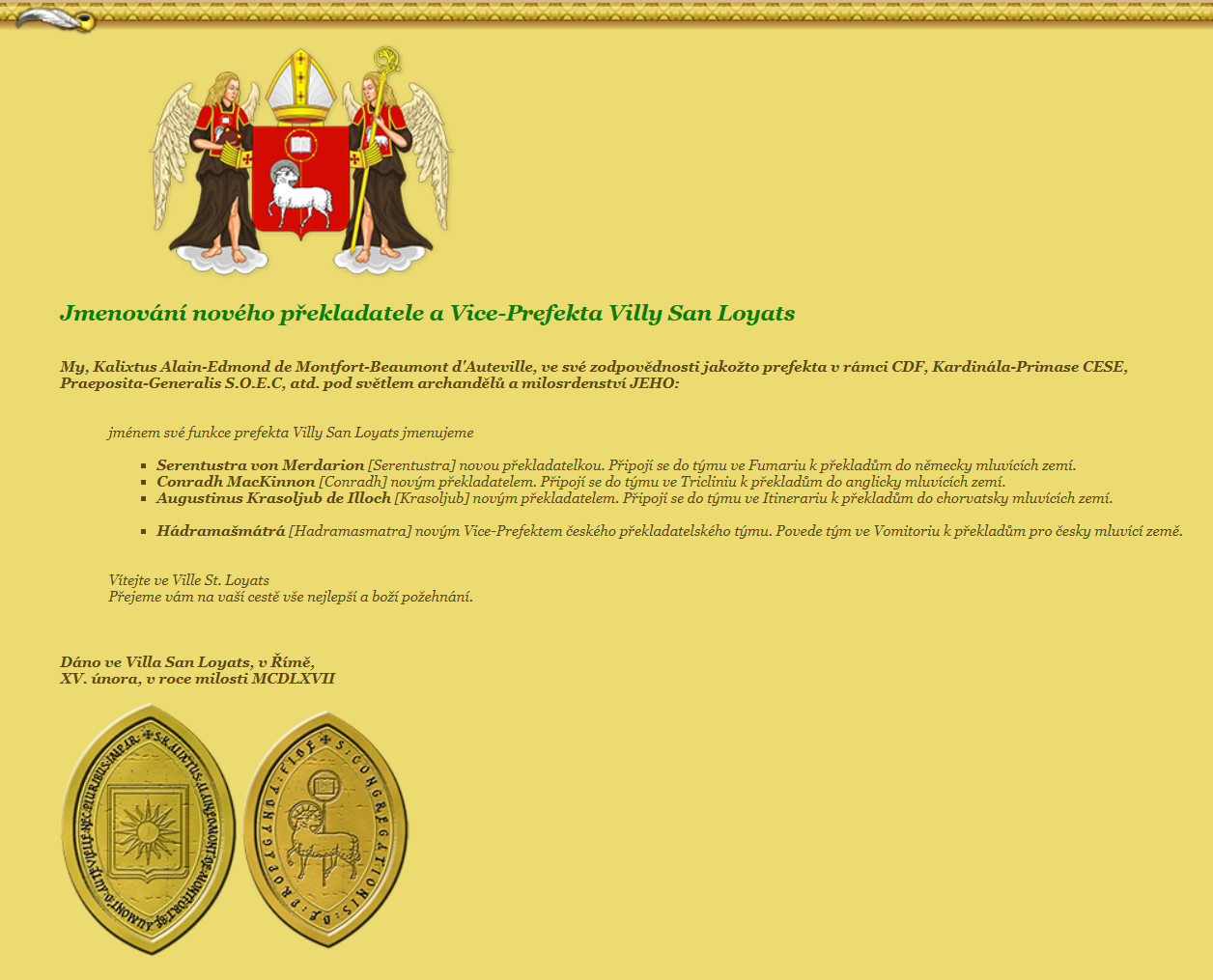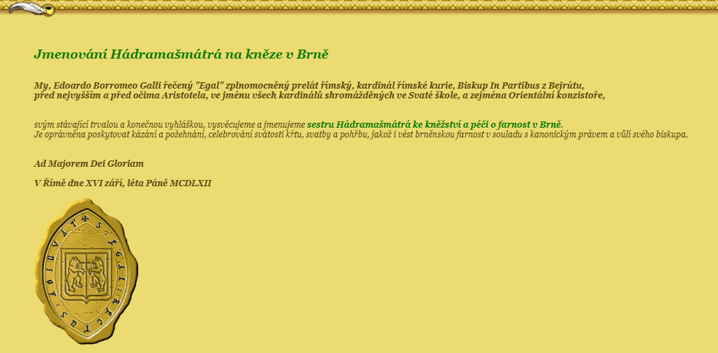 Jmenování Hádramašmátrá chartulářem pro český region v Kongregaci pro nový apoštolát