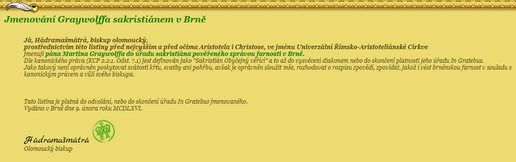 Ustanovení olomoucké diecézní stráže biskupem Hádramašmátrou