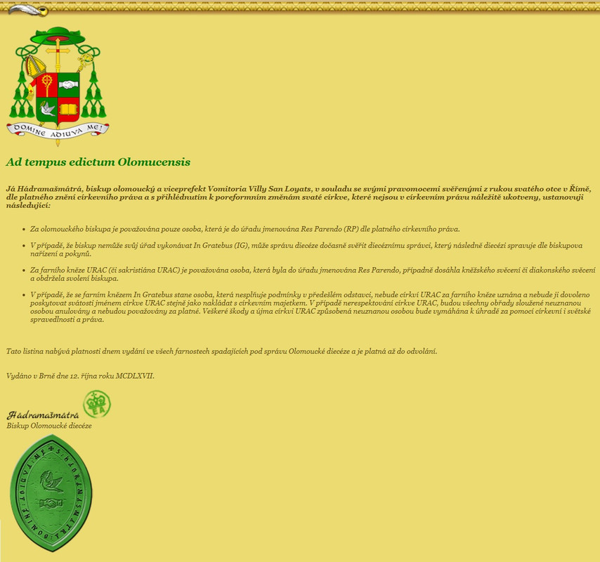 Ustanovení olomouckého biskupa Hádramašmátry o církevních úřadech v Olomoucké diecézi